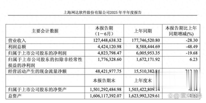 网达软件(603189)发布2025年半年报,实现营业收入1.27亿元,较上年同期下降28.30%;归属于上市公司股东的净利润482.38万元,较上年同期下降19.68%。